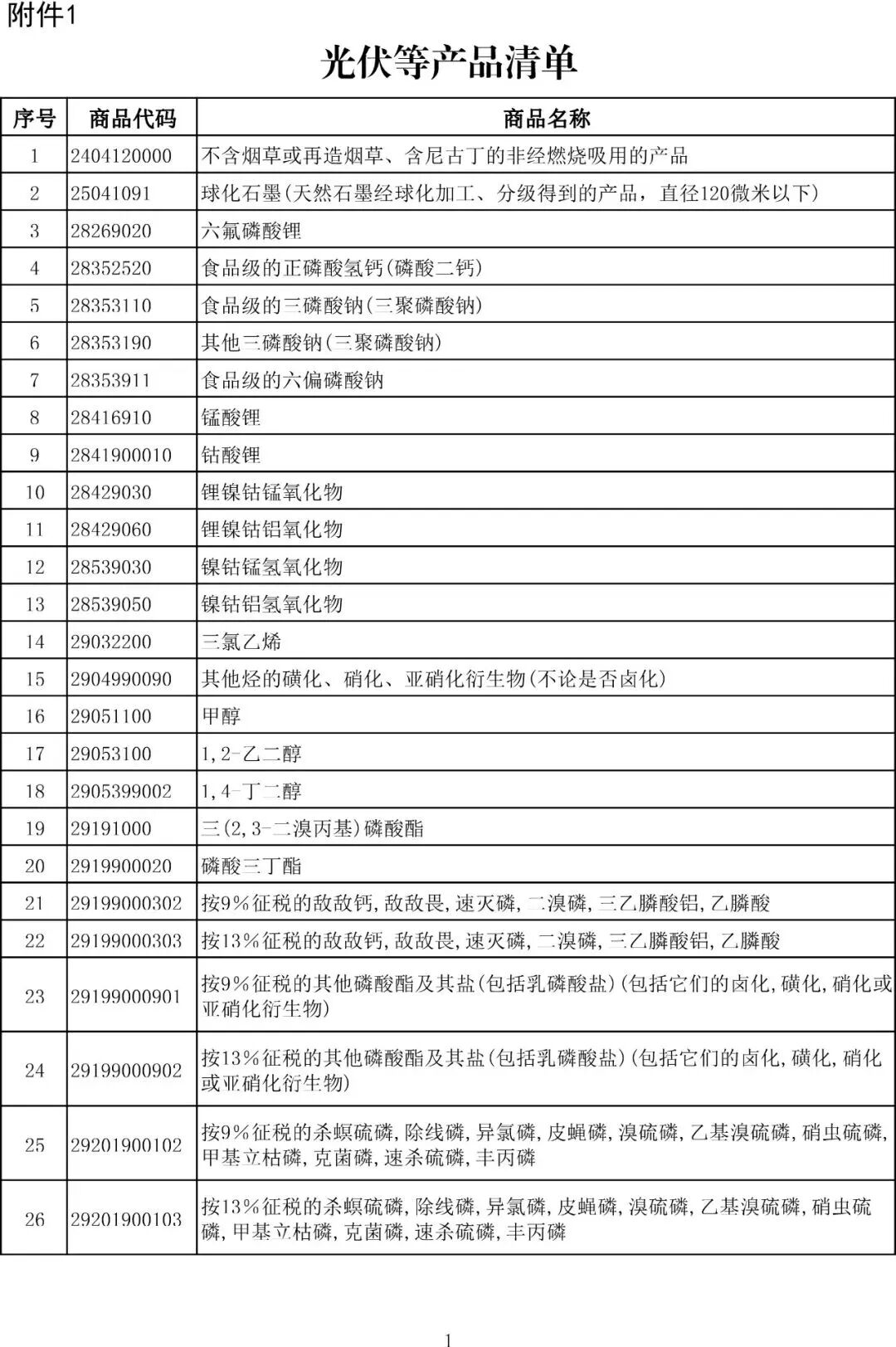 附:光伏、电池等产品清单